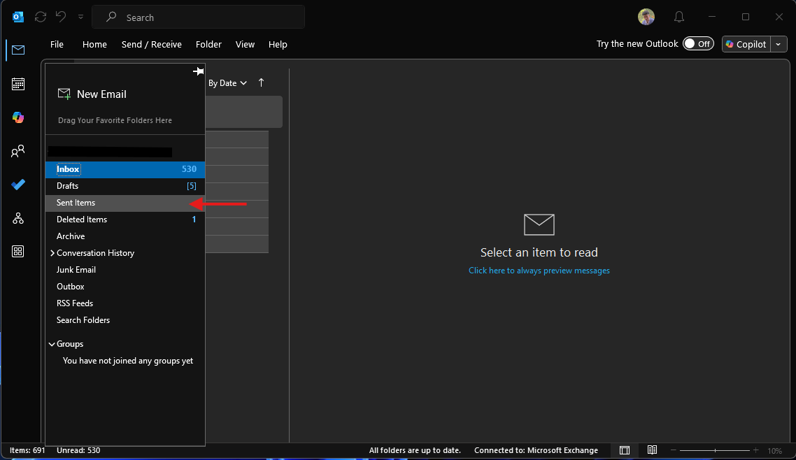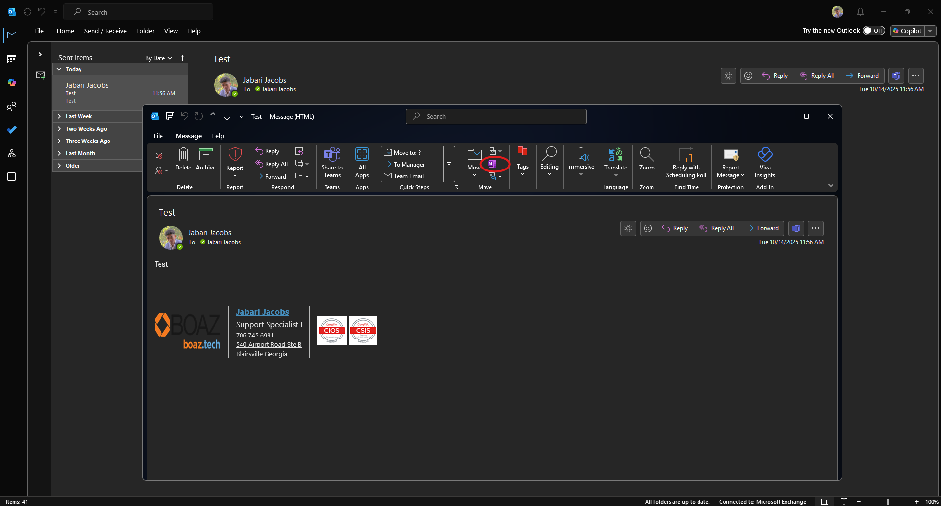 Microsoft Outlook (desktop version) is installed and connected to your Microsoft 365 account.