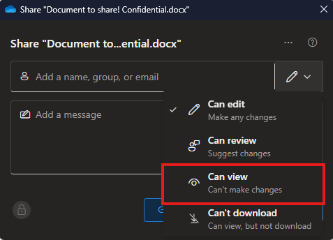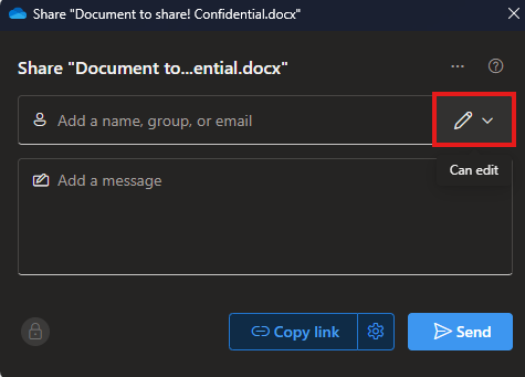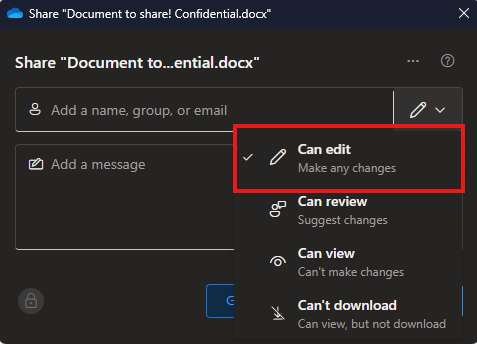 Can edit → allows the person to make changes to the file. (Changes to the document will affect the owner and recipient copies)